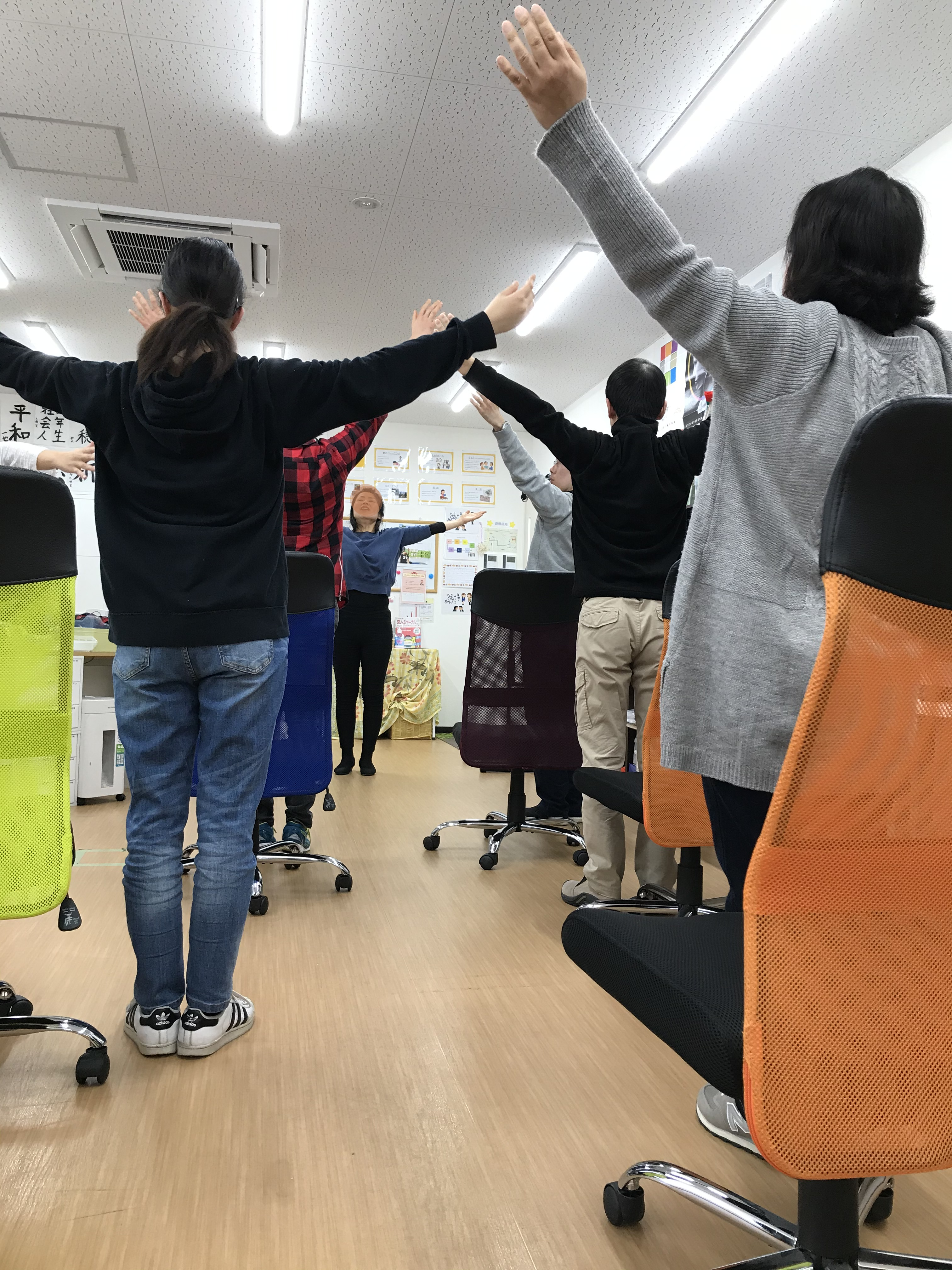 身体の緊張を和らげるためのヨガを中心に行いました。