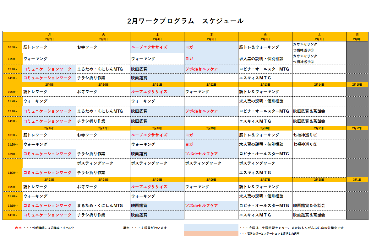 2月中のワークスケジュールはこちら
