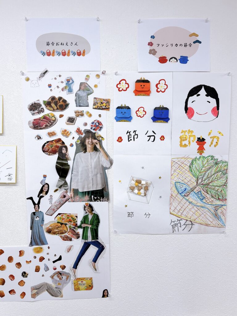 今回は節分についてご報告いたします。ファシリカの内職ワークにて、今回は節分をテーマに皆さんで取り組みました。グループに分かれまして、節分をイメージした作品を作りました。