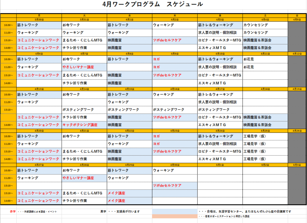 また楽しい&役立つプログラムが増えました!4月のプログラムスケジュール