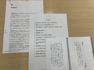 柔軟で姿勢を整え、早口言葉でお口の体操をしてから、詩や小説を皆で読み合わせしています。