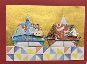 皆で協力し、目標は五段飾りを作ろう!ということで、お人形にお道具まで折り紙で作りました。
