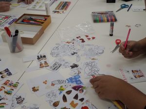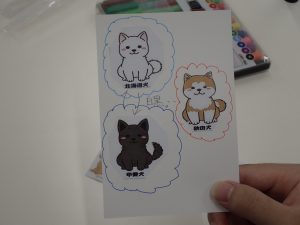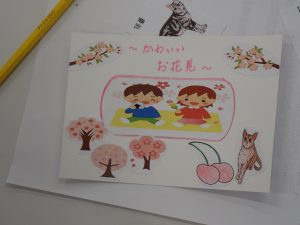 参加者の皆さんの自由な発想で、折り紙やシール、画像等を用いてそれぞれのハガキを作ってくださいました。