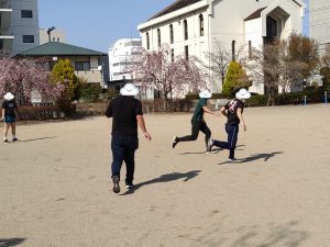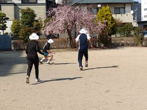 天気も良く、少し暑いくらいに感じられる春の陽気のなか皆で運動しました。