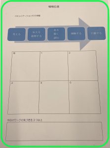 ✩ 情報伝達 ✩ に関するワークで、いくつかのグループに分かれて皆さん挑戦しました!