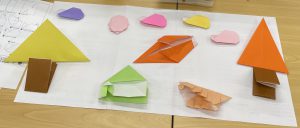 折る数や、作る作品の分配等を決めなければならず、適宜コミュニケーションを取ることが要求されるワークでした。