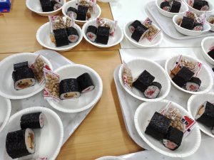 今年の方角は「南南東」でしたね・・・利用者様にカットしていただきみんなでおいしくいただきました。