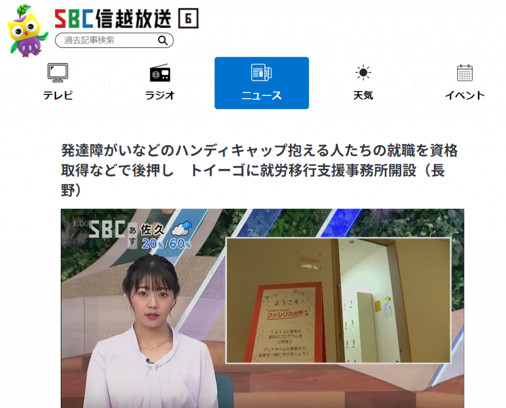 → 発達障がいなどのハンディキャップ抱える人たちの就職を資格取得などで後押し トイーゴに就労移行支援事務所開設(長野)[SBC信越放送]