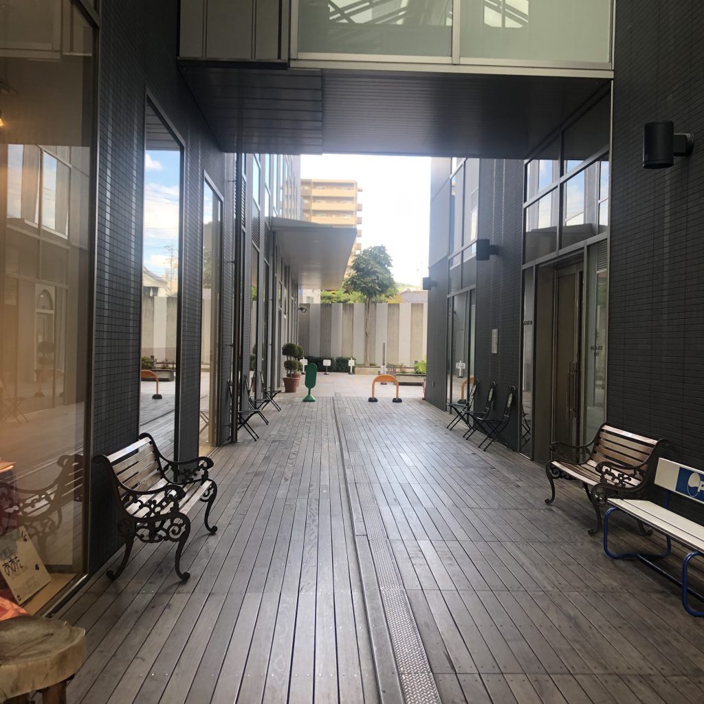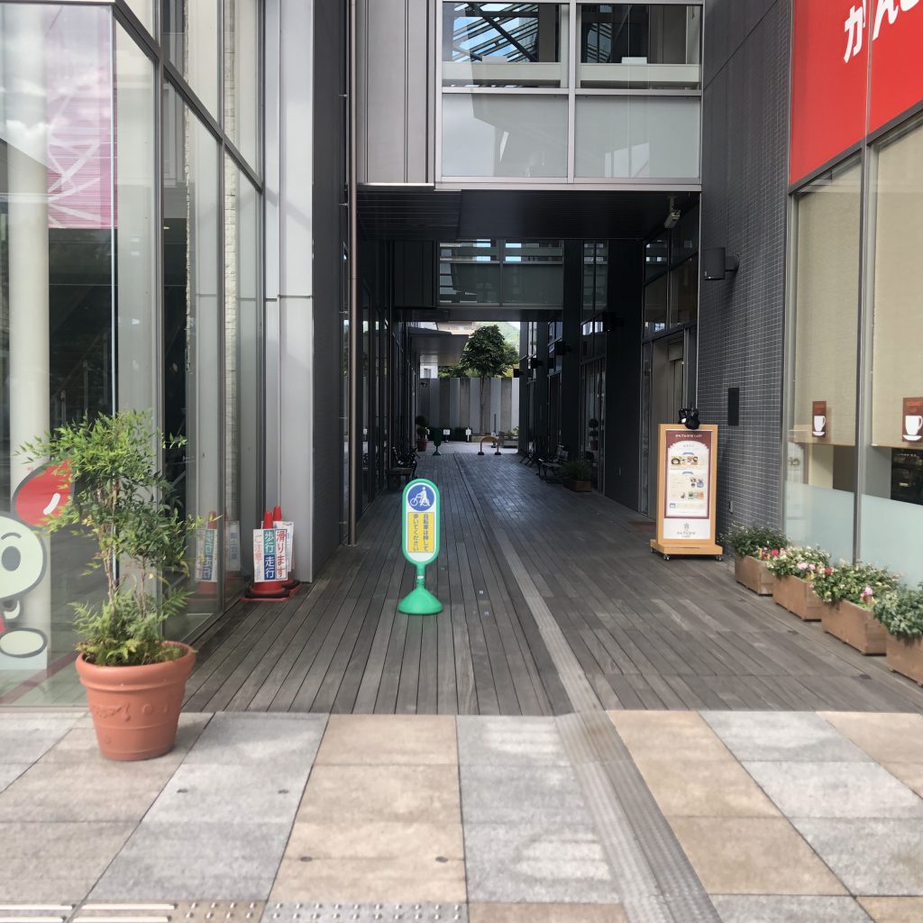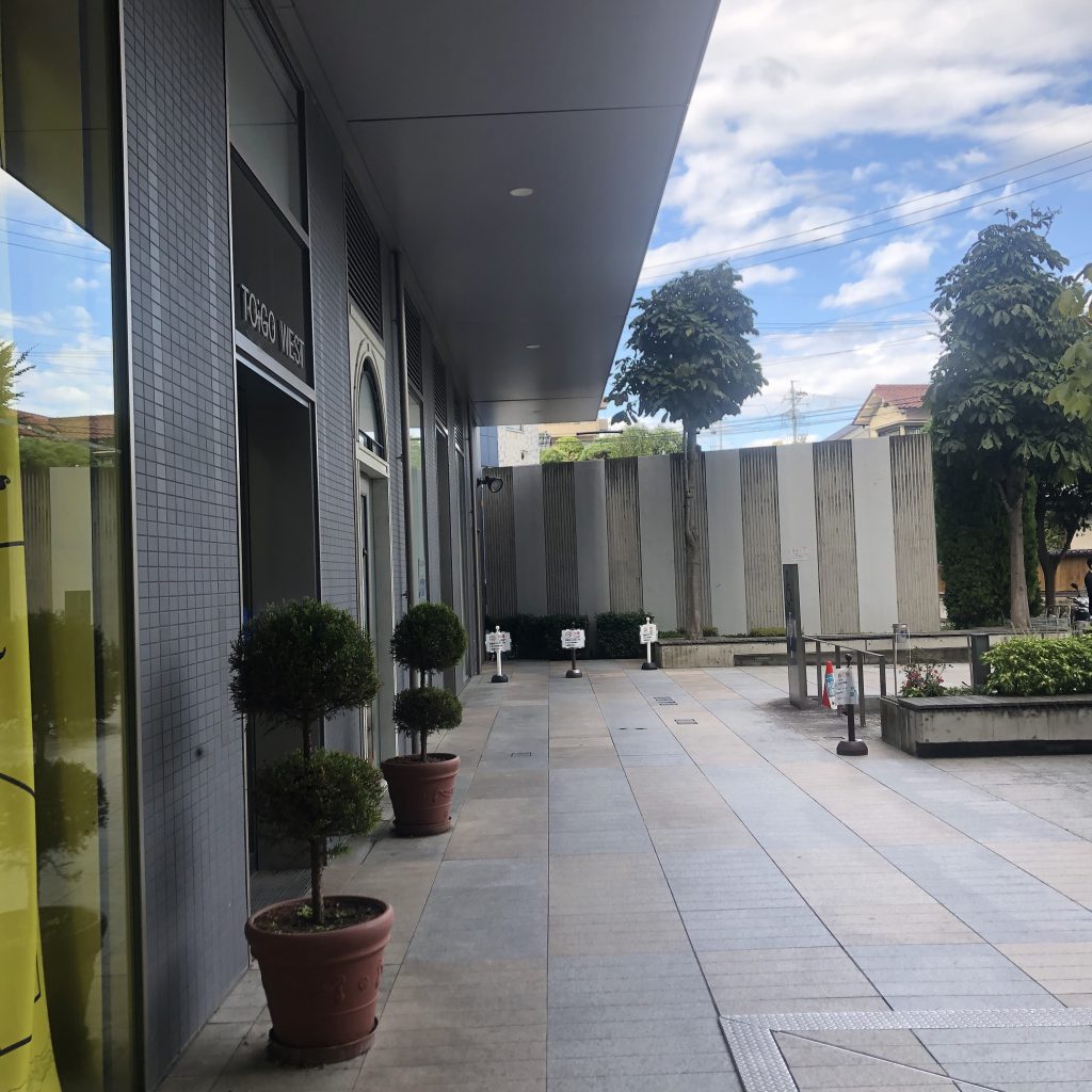TOiGO WESTの入り口の右側にはアーケードがあります。風が抜けて心地いいです。でも冬は寒いかもしれません・・・。