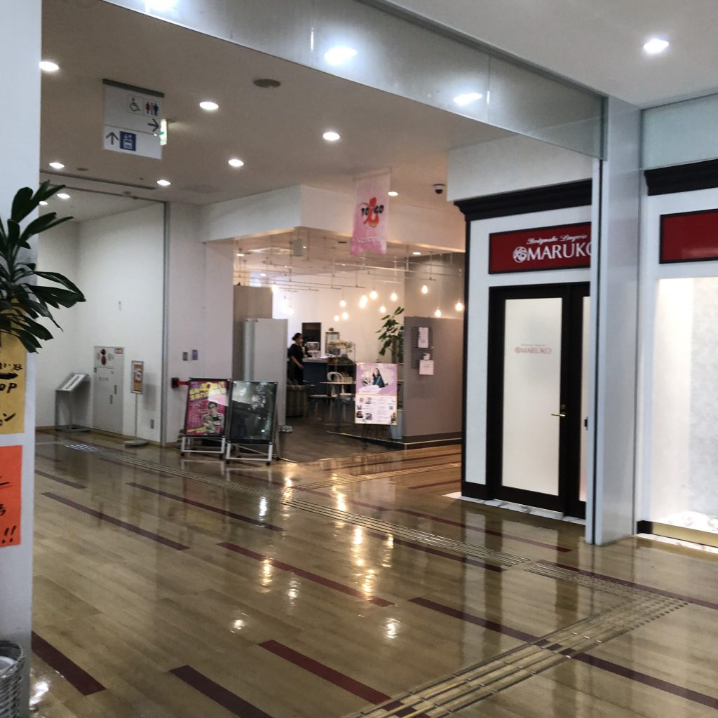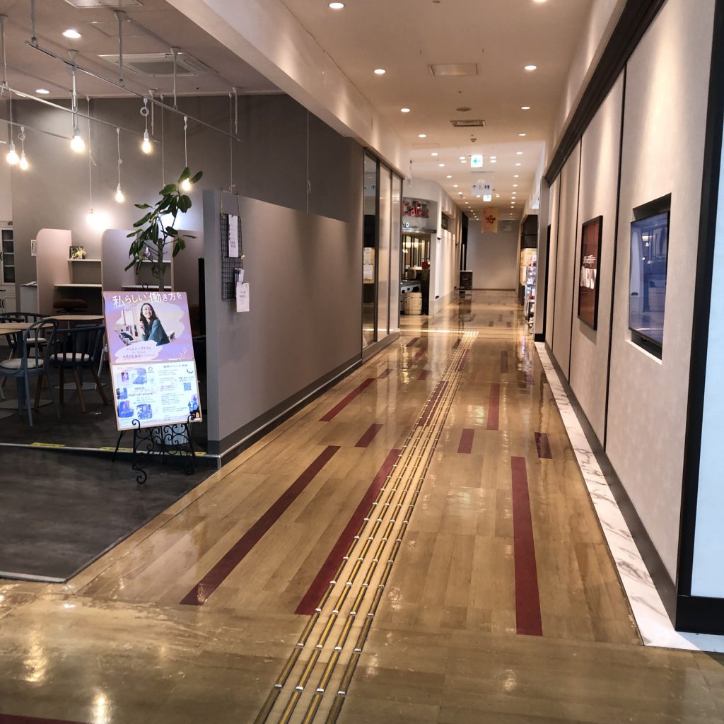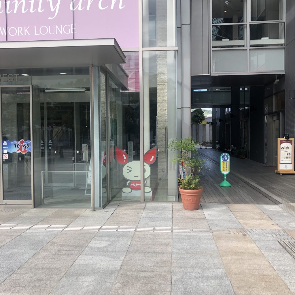 TOiGO WESTの入り口の右側にはアーケードがあります。風が抜けて心地いいです。でも冬は寒いかもしれません・・・。
