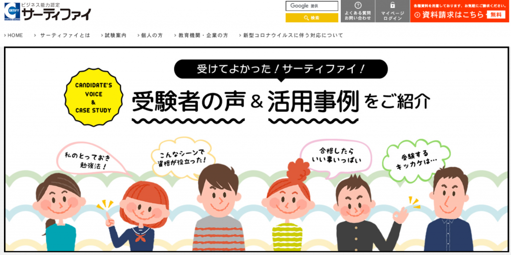 サーティファイは、パソコン・ビジネススキルを身につけるための検定試験で、40年の歴史があり、実践的だと定評があります。年間10万人以上が受験しています。