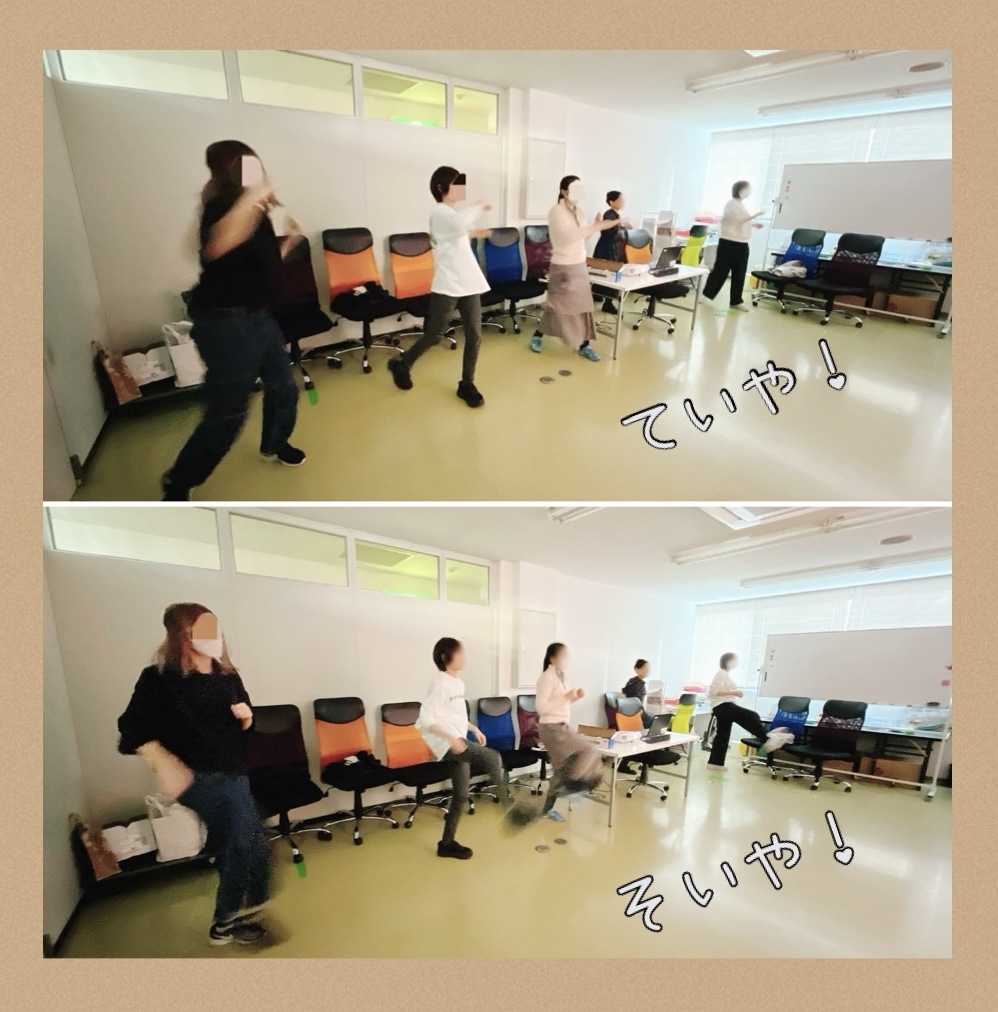 音に合わせて身体を動かしていくのですが、全身運動です。動画自体が15分くらいのものでもかなりの運動量。構えて打って、構えて打って、最後の方は連続打ちです。動画はエクササイズ目的でもあるようですが、皆さんとても良い動きを見せておりました。参加者の皆さんに感想を伺ったところ、疲れたけれど良いストレス発散になったとのこと。定期的に開催していきたいです(*^^)v