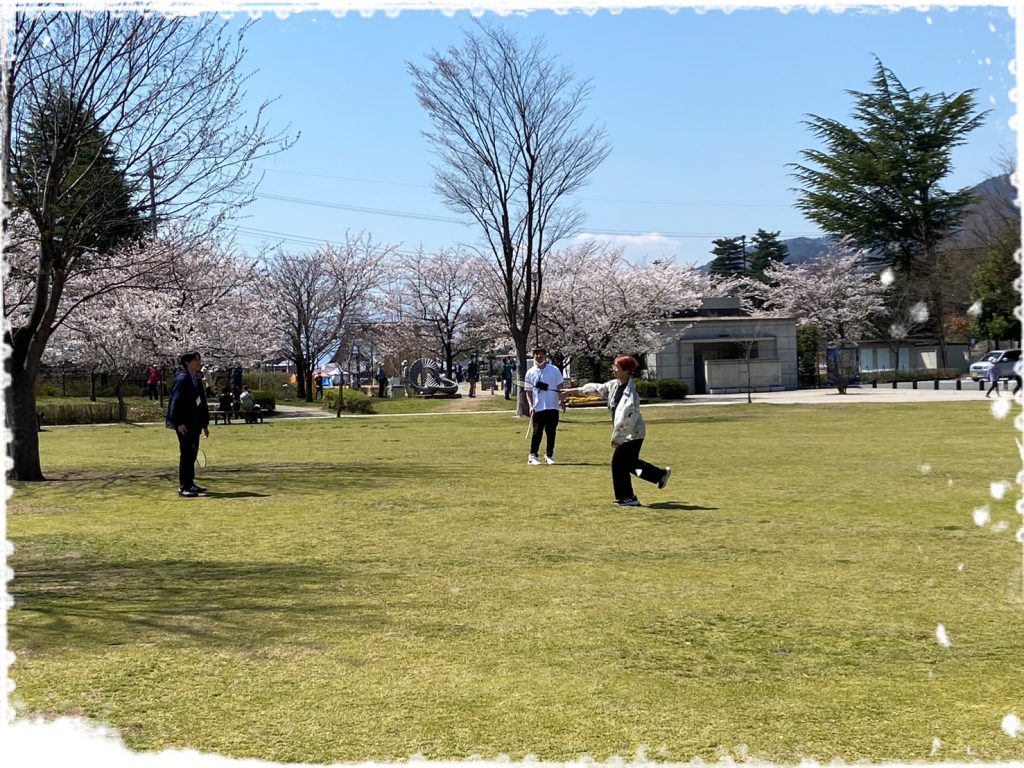 善光寺裏の城山公園で桜に囲まれながら、キャッチボール⚾️・バドミントン🏸…♪*゚