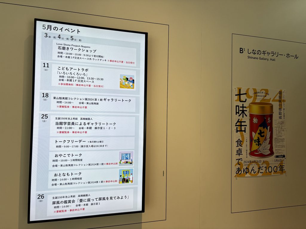 月曜日の4コマ目(14:10~15:00)に行っているウォーキングは、ある利用者さんの提案で、県立美術館で今日(5/6)まで開催されていた「八幡屋磯五郎展(https://nagano.art.museum/exhibition/exhibit_202404250507)」を見に行くことに。
