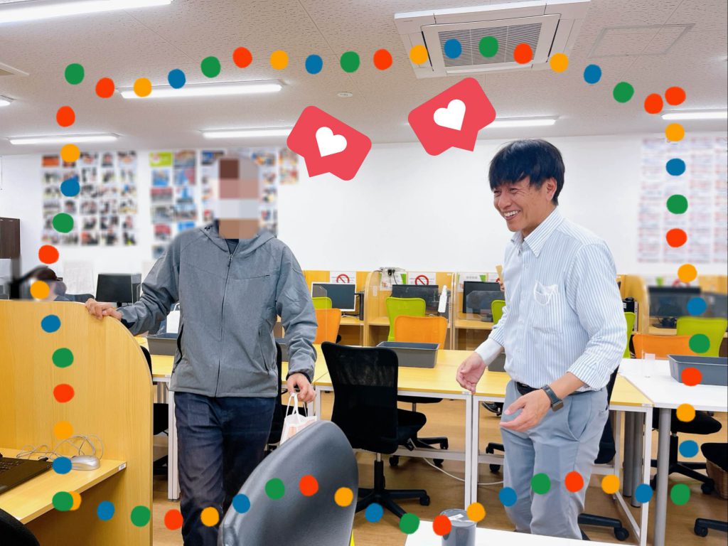 卒業した次の日、なぜかNさん通所されてました。最後にプレゼントを渡したいと、このためだけに通所された利用者さんとの写真で締めくくります。皆さんが彼を頼りにして、心の拠り所にされていたと思います。新しい場所でもすでに周りの方から必要とされていて、とても順調に仕事をされているとのこと。Nさんなら、大丈夫です。太鼓判です。たまにはファシリカに遊びにいらしてくださいね。
