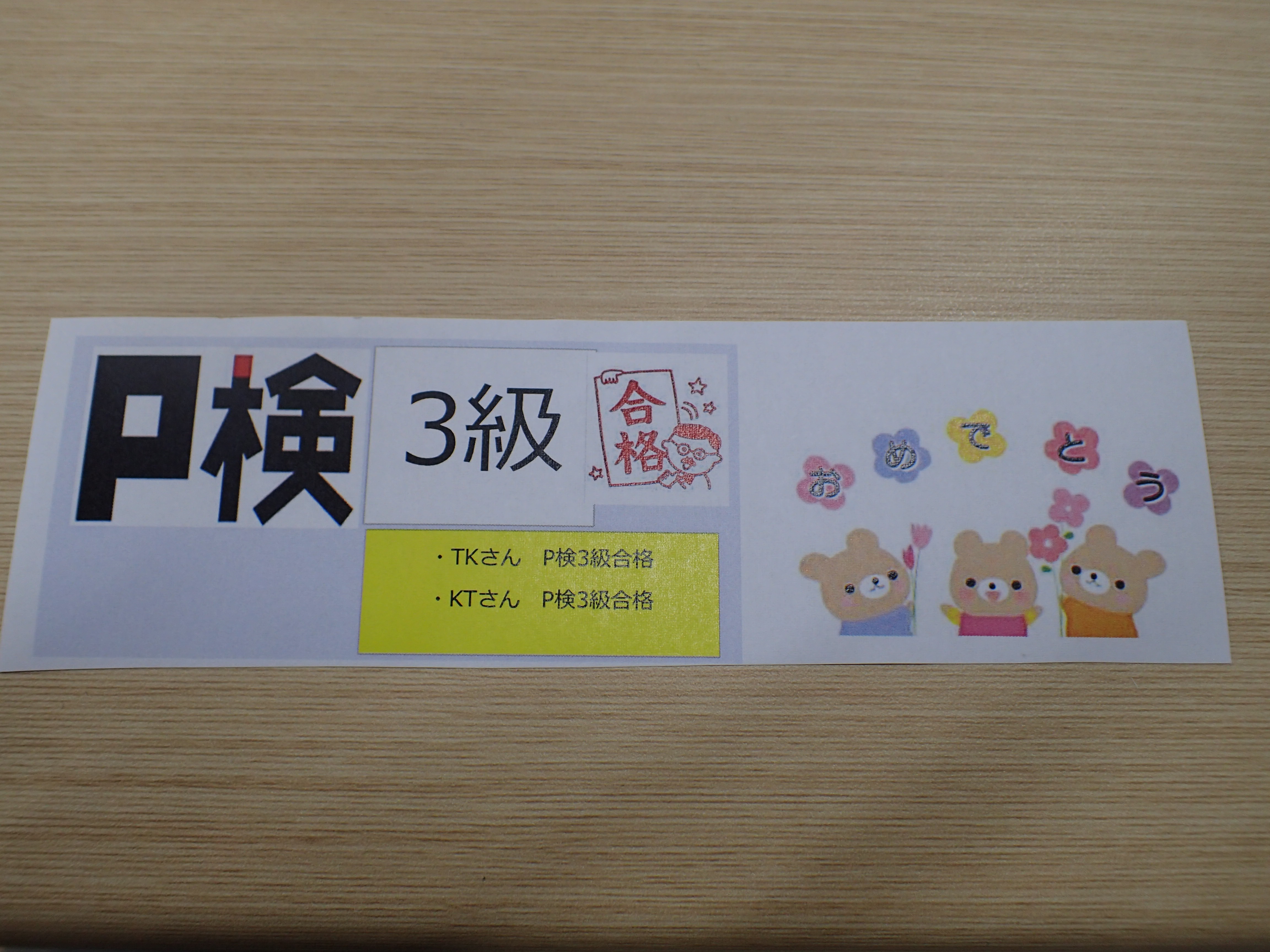 ②TKさん P検3級 合格