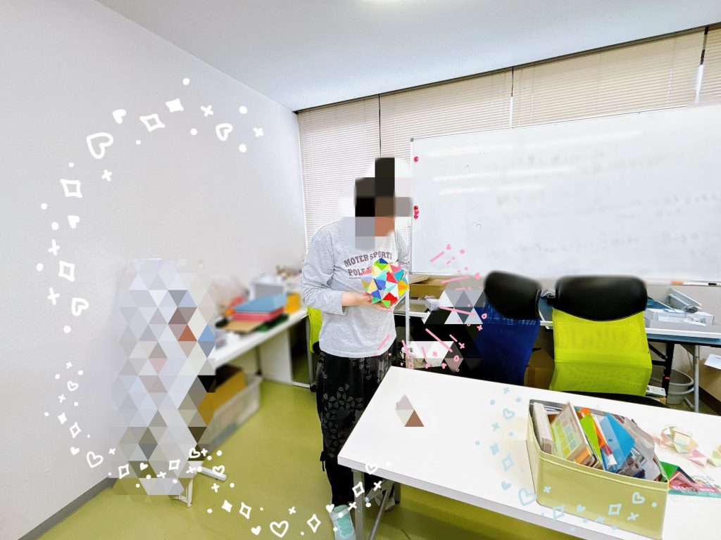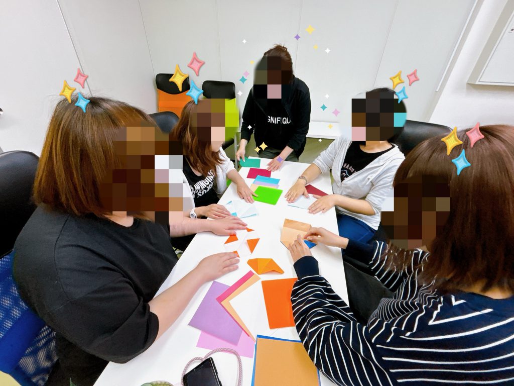 さて、今回はユニット折り紙です。ご存じでしょうか。折り紙のパーツをたくさん作り、一つの作品に仕上げていくのですが、見たことはあっても作ったことはなく。たまたま利用者のAさんがご自身の机で気分転換に作っているのを見かけたのがきっかけです。美しいし楽しそうなので、今回のワークに採用させて頂きました。(Aさんありがとうございます)