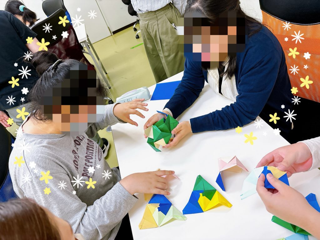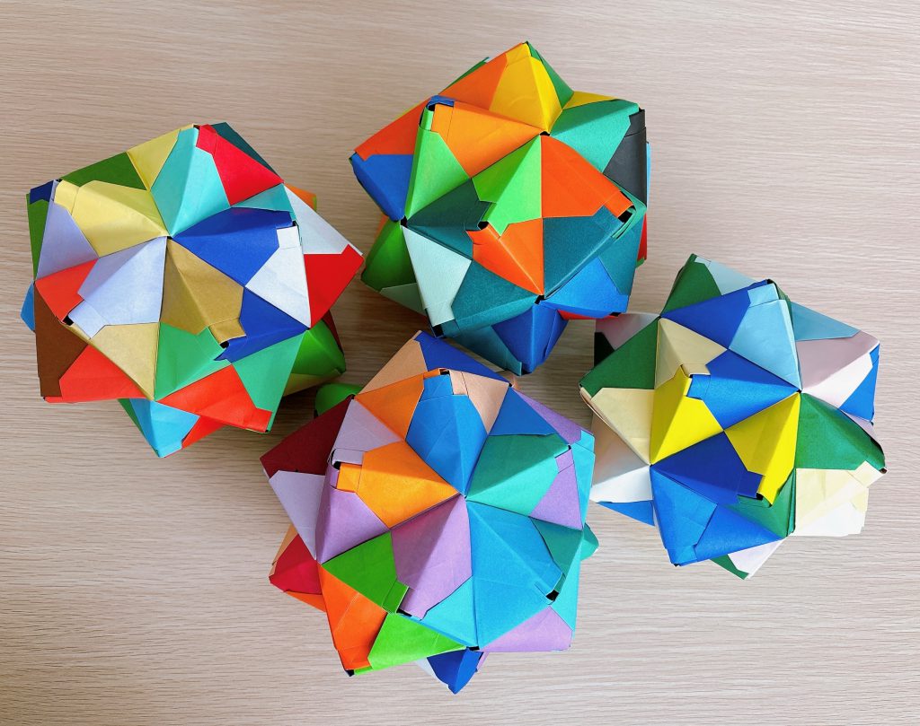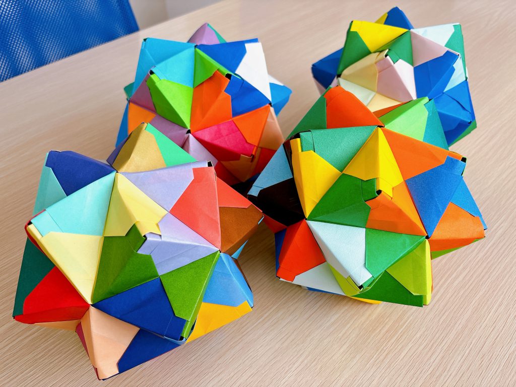 というわけで、出来上がったユニット折り紙完成作品がこちらです!皆さんがんばりました。素晴らしい作品たちですヾ(≧▽≦)ノ お疲れさまでした☆