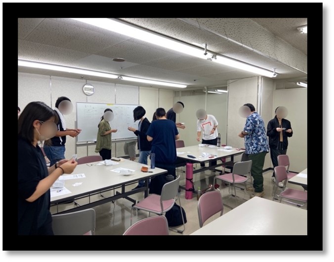その後、ワーク参加者12人全員で一人一人に持つ印象を紙に書き出し手紙のような感じで全員に配ります→→自分は他人からどのような印象を持たれているのか、自分では気づいていなかった自分を発見👀🫣!?できたりと、面白味もあり楽しいワークになりました。