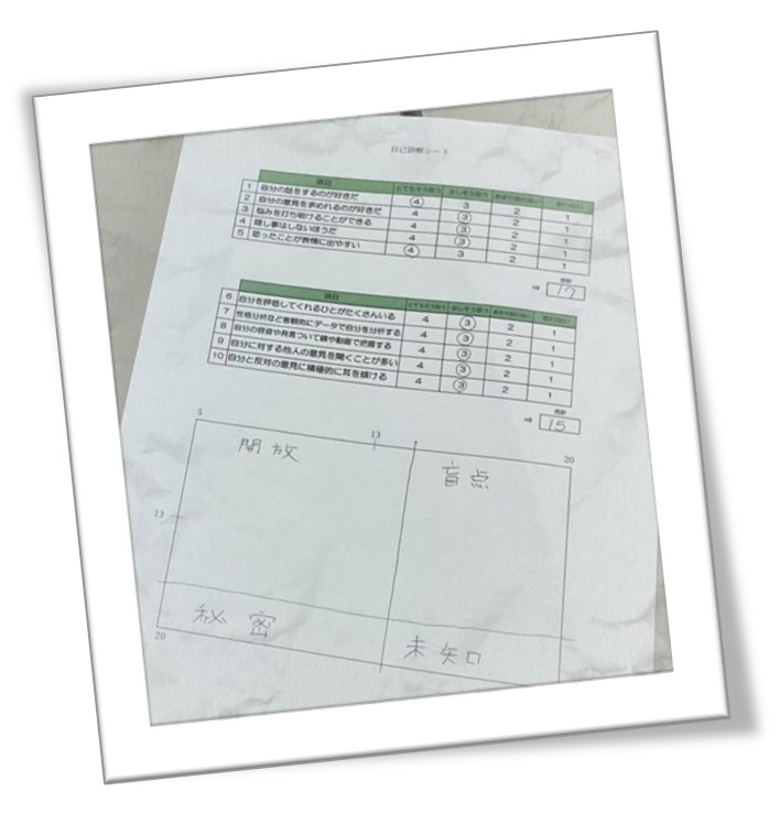外部講師の方にコミュニケーションを考えるワークをしていただきました【ジョハリの窓】