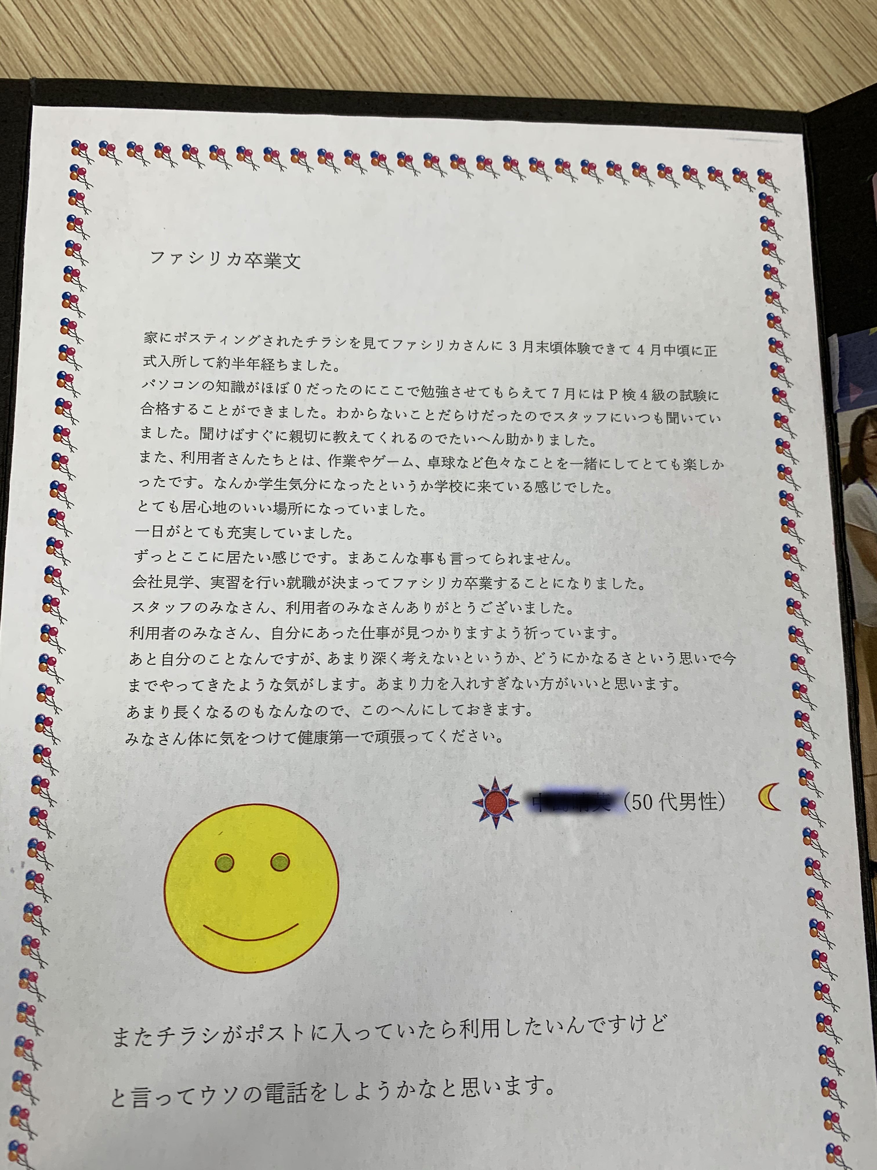 より高いステージに進めるよう今後、支援員も共に伴走していきたいと思います!(^^)!
