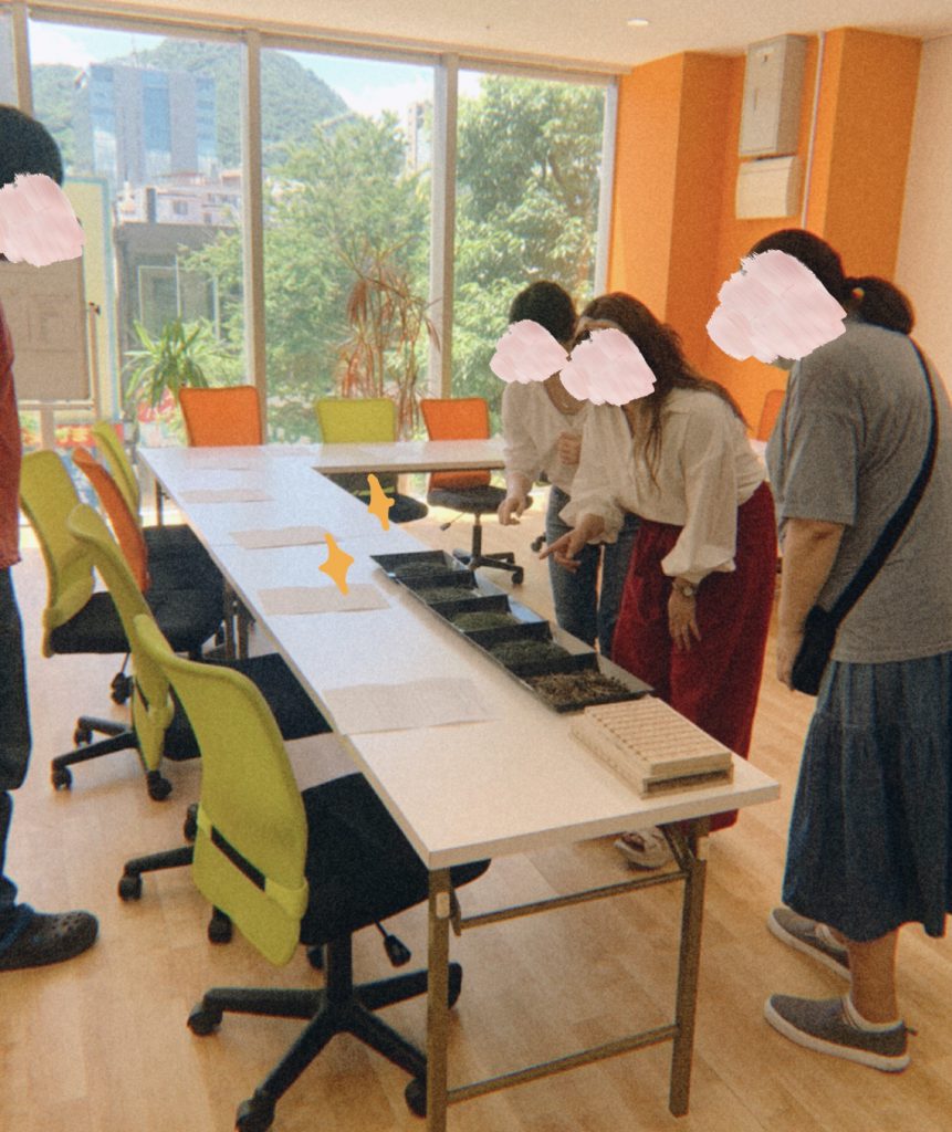 一種類ずつ味わいながら、「色は緑色だった」や「独特のにおいがした」「苦味が強め」など、自分で感じたことをメモしていきます。