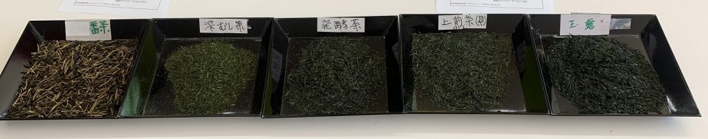 今回は、「玉露」「上煎茶」「深蒸し茶」「番茶」「発酵茶」の5種類を用意していただきました。