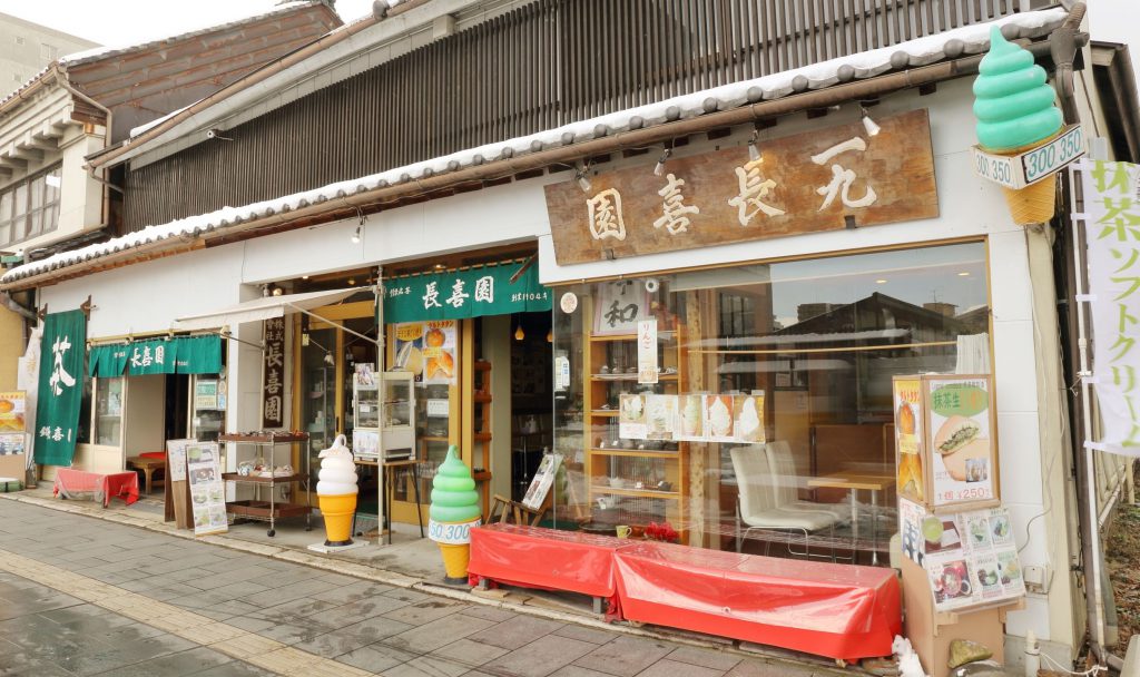 今回、茶歌舞伎を主催していただいたのは、長野中央通り、セントラルスクゥエアの目の前にお店を構える「長喜園」さんです。明治37年創業で、約120年の歴史を持つ有名なお茶屋さんです。